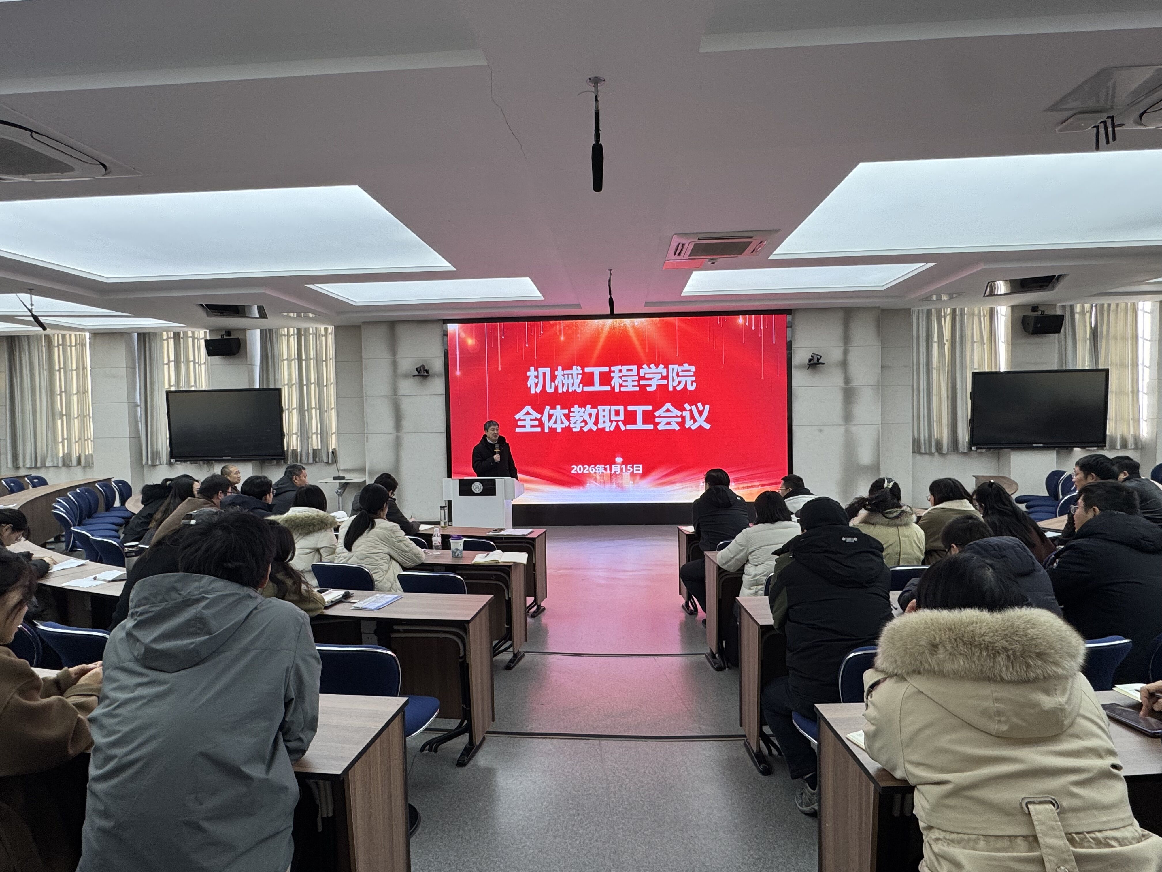 本网讯 凝心聚力,以实干谋发展,以奋进开拓新征程。为系统梳理2025年度工作成果,总结成绩与经验,科学谋划2026年发展蓝图,明确前进方向与任务,近日,机械工程学院在A3W301教室召开全体教职工大会暨中层管理人员述职评议会。副校长章敏凤出席会议,学院党政领导班子、全体教职工齐聚一堂,共同回顾过去、展望未来。(图为学院中层管理人员现场述职)首先,执行院长陈杰平代表学院作2025年度工作报告,围绕党建引领、教学工作、学科建设、师资建设、人才培养等方面全面总结了各部分工作取得的成果。他指出,过去一年中,学院持续强化思政教育,推动党建与业务深度融合;教学方面深入推进课程思政与工程教育认证,学生创新实践能力显著提升;学科建设稳步推进,科研项目与成果转化取得新突破;师资结构进一步优化,青年教师成长环境不断完善;人才培养体系持续创新,毕业生就业质量与社会认可度稳步提高。同时,他也深入分析了现阶段面临的困难和挑战,并对2026年的重点任务作出系统部署,强调要以“十四五”收官与“十五五”开局为契机,推动