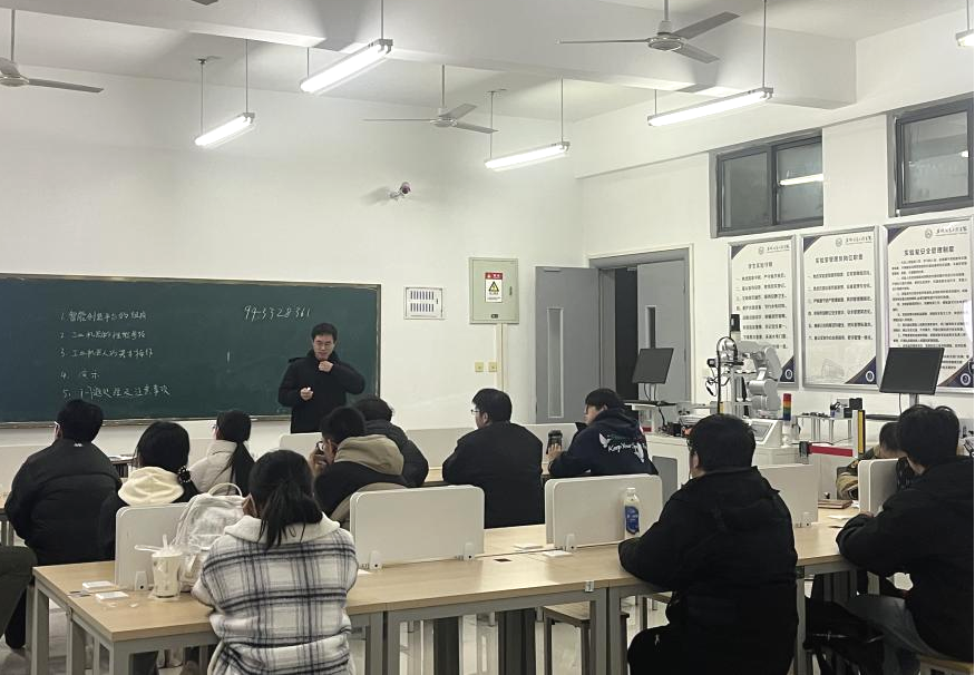 本网讯 为提升机械电子与智能制造工程专业教师的实验教学技能,熟练掌握智能制造装备的功能与应用方法,学院邀请工程师,于3月16日和17日开展智能制造装备实验室专项培训。培训期间,工程师细致讲解了整个实训平台的运行原理,重点演示指导了工业机器人及协作机器人的示教操作。针对PLC控制直角仓储机器人运动,工程师讲解了基础控制方法,增设触摸屏点动操作功能,有效规避操作中的意外风险,保障实验教学安全。此外,工程师还介绍了工业物联网与数字孪生技术在教学平台中的应用,展示了二者对平台运动过程的数据采集与实时监控功能,助力教师掌握智能化教学手段。(图为培训现场) 培训过程中,参训教师积极与工程师交流探讨,结合课程教学实际提出疑问,工程师逐一耐心解答,现场互动氛围浓厚。为方便学生课前预习,本次培训还录制了所有操作细节的视频素材,供学生线上自主学习。(图为培训现场)此次培训有效帮助参训教师掌握了相关装备的操作方法,提升了他们对智能制造实训平台的综合应用能力,为后续开展相关课程教学奠定了基础。培训结束后,教师们