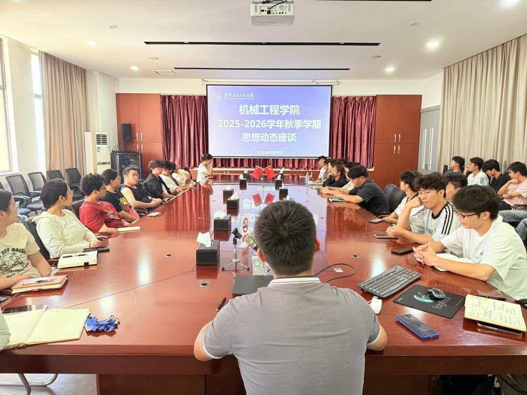 本网讯 为精准把握新学期学生思想脉搏,及时回应学生成长诉求,筑牢学生思想引领根基,机械工程学院于近日在学院二楼会议室召开2025-2026学年秋季学期学生思想动态座谈会。学院党总支副书记韩海东、辅导员代表,以及学生代表参会,围绕学生思想状况、学业发展、生活需求等核心议题展开深入交流。(图为座谈会现场)会上,学生代表结合自身观察与体验,分维度分享了当前年级学生的思想动态。学生代表就学校发展改革、学风建设、学习生活保障、校园安全、学生教育管理、第二课堂活动等方面进行探讨。此外,学生代表还就校园生活服务、心理健康支持等方面提出了合理化建议。(图为座谈会现场)针对学生代表反馈的问题与需求,韩海东逐一回应并明确解决方向。他强调,“把握学生思想动态是做好育人工作的前提,学院将以‘问题导向、需求导向’为原则,精准对接学生诉求”,确保学生诉求及时落地。同时,学院还将关注学生心理健康,开展个性化辅导,为学生成长保驾护航。此次思想动态座谈会不仅搭建了学院与学生间的高效沟通桥梁,更为新学期学生工作的精准开展提