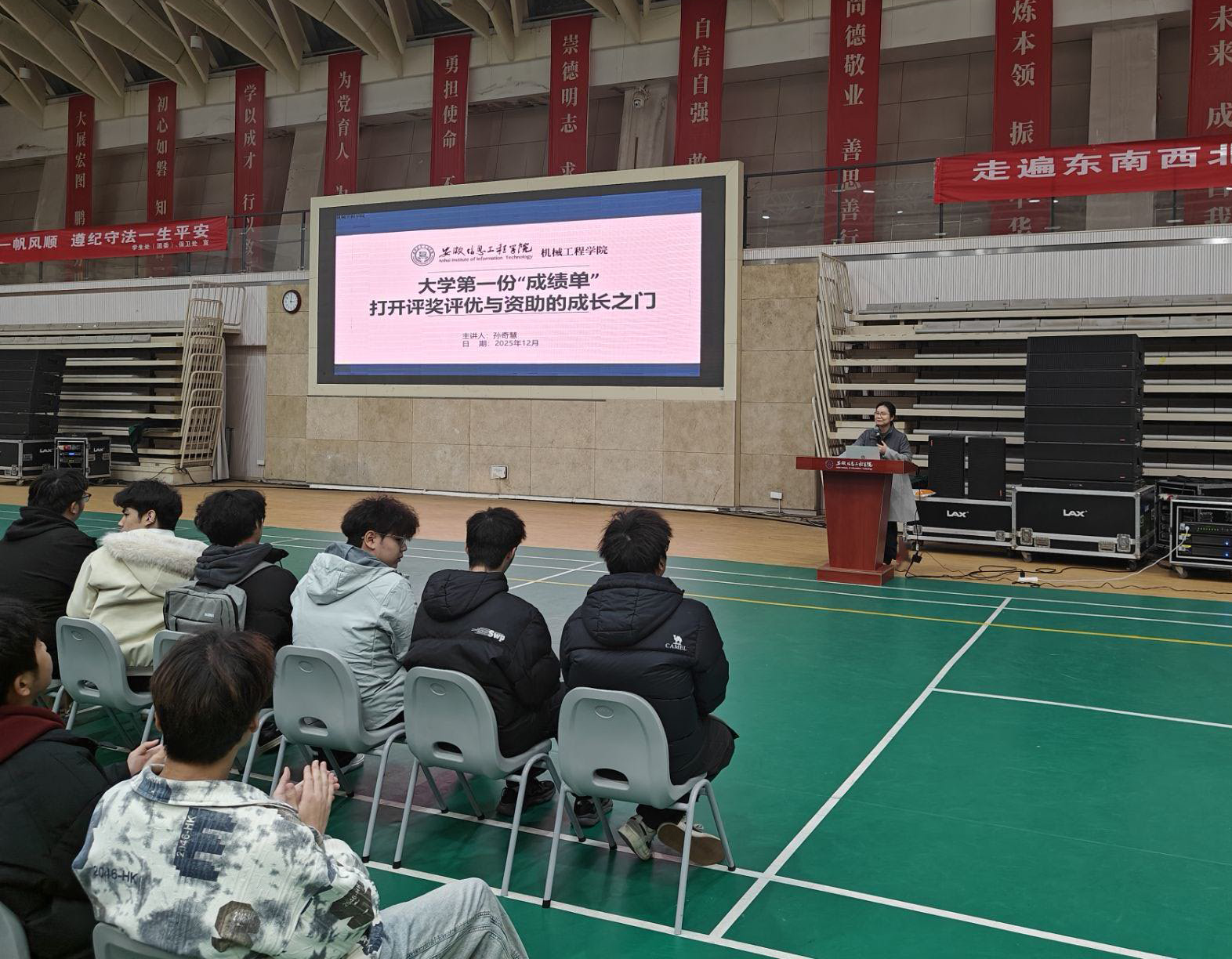 本网讯 为帮助2025级新生快速适应大学环境、缓解入学心理压力、全面掌握资助政策,12月19日,机械工程学院在体育馆举办新生心理适应与资助政策专题讲座。全体2025级新生到场参与,聆听这场兼具专业性与实用性的入学指导课。讲座由学院学工秘书孙奇慧主持,特邀大学生心理健康教育中心主管夏嫣雨老师担任主讲。(图为孙奇慧主持)夏嫣雨以“从‘心’启航,从‘心’开始”为主题,围绕环境适应、情绪调节、人际交往等方面展开讲解。她巧妙运用“果果”“猪咪”“旺仔”等生动的猫咪案例,将抽象的心理适应知识转化为贴近校园生活的故事,以轻松幽默的风格剖析新生入学可能面临的陌生感与磨合问题,同时提供切实可行的情绪调节方法与适应建议,引导同学们以积极心态迎接大学新阶段的挑战。(图为讲座现场)在资助政策解读环节,孙奇慧系统梳理国家奖学金、国家助学金、助学贷款等多项核心资助措施,详细讲解各政策的申请条件、办理流程及评审标准。针对新生普遍关注的学费减免、生活补助等问题,她逐一进行细致解答,确保家庭经济困难的新生全面知晓政策、掌